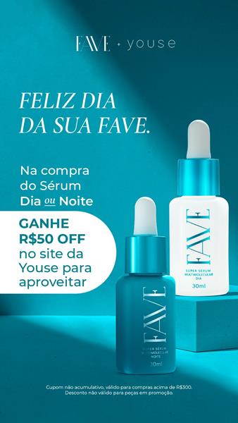 Outra artista-empresária atenta às tendências desta data é a atriz Flavia Pavanelli. Ela – que também é influenciadora digital sobre assuntos relacionados à estética – lançou há pouco sua própria linha de skincare, a FAVE, e, para o Dia das Mães, trouxe uma collab com a sua marca de roupas Youse. Quem comprar um kit com 2 unidades do Super Sérum Multimolecular (que tem as versões diurna e noturna), disponível no site faveskin.com.br, recebe ainda uma faixa de cabelo personalizada e um cupom de 150 reais de desconto para ser usado na Youse. As compras unitárias garantem um cupom de 50 reais na mesma loja.