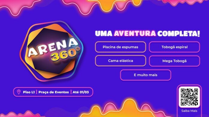 Toda a estrutura do Arena 360º foi pensada com segurança para diferentes faixas etárias, combinando atividade física e brincadeira livre em um ambiente monitorado. A proposta é oferecer lazer nas férias escolares com opções que agradam tanto as crianças quanto os adultos.